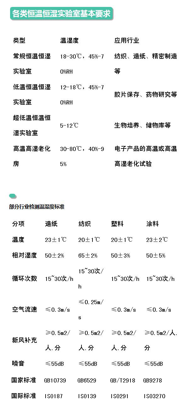 1、普通恒温恒湿实验室:温度控制精度±2℃,相对湿度控制精度±5-10%RH